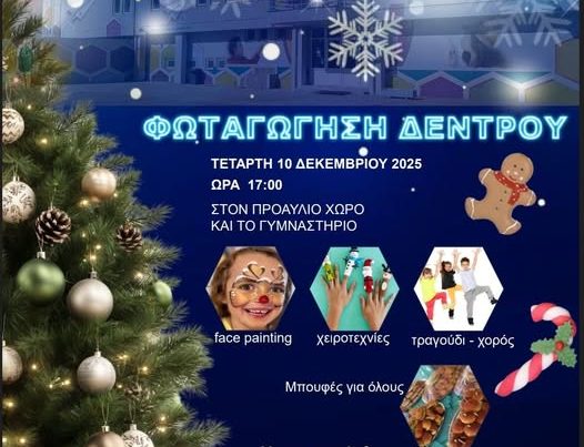 Ανακοινώσεις 4 Δεκεμβρίου, 2025 Φωταγώγηση Δένδρου -Το σχολείο μας φοράει τα γιορτινά του! -Με χαρά σας προσκαλούμε στην φωταγώγηση του χριστουγεννιάτικου… HLIAS 0 Love0