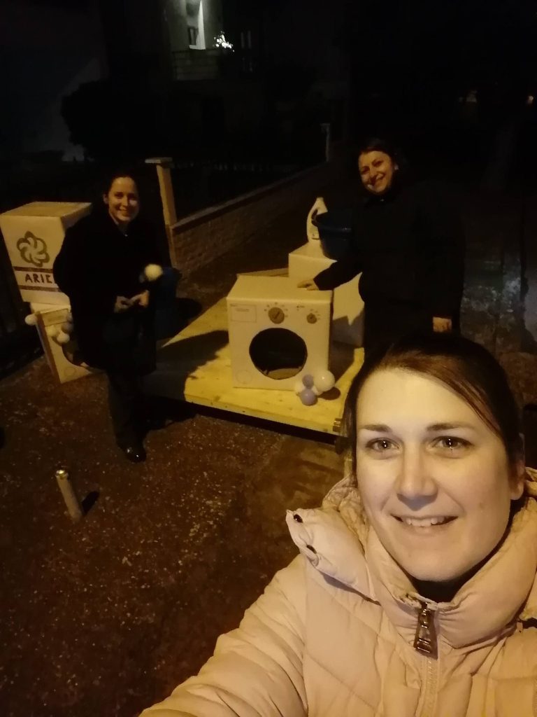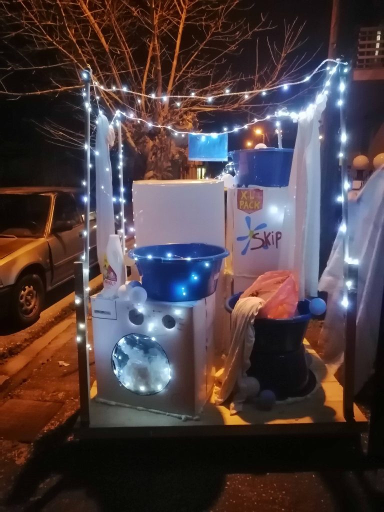 τον Αριστοτέλη Καμπράγκο (πατέρα του Νηπιαγωγείου) που μας βοήθησε με το βίδωμα των ξύλων του άρματος.